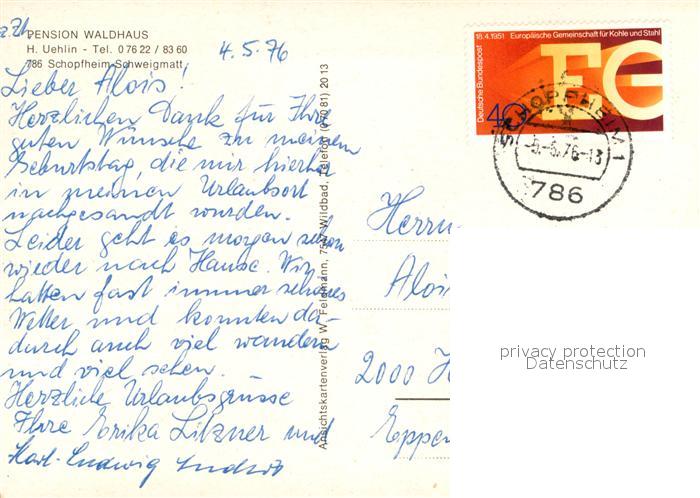 72974026 alte Postkarte Schweigmatt Pension Waldhaus postalisch gelaufen Erhaltung siehe scans [PaolaD17] KatCode: 11110008336081