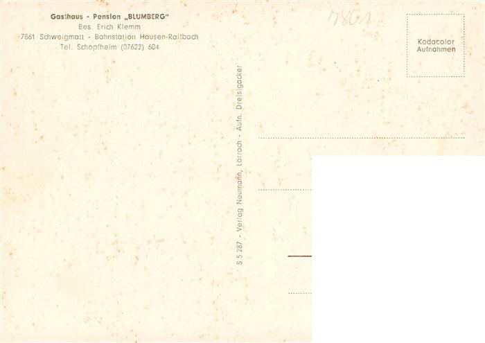 73928366 Schweigmatt Schopfheim Gasthaus Pension Blumberg Panorama Gastraum postalisch nicht gelaufen Erhaltung siehe scans [WerneD78] KatCode: 11110008336081