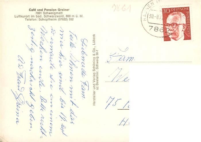 73935159 alte Postkarte Schweigmatt Schopfheim Panorama Cafe Pension Greiner Terrasse Gastraum postalisch gelaufen Erhaltung siehe scans [WerneD78] KatCode: 11110008336081