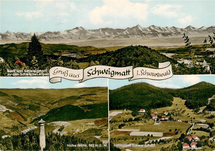 73928310 alte Postkarte Schweigmatt Schopfheim Panorama mit Schweizer Alpen Aussichtsturm Hohe Moehr postalisch gelaufen Fliegeraufnahme Erhaltung siehe scans [WerneD78] KatCode: 11110008336081