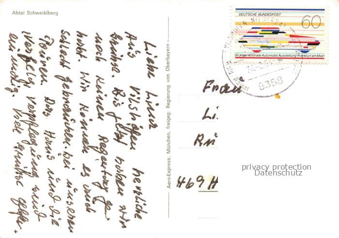 74085694 alte Postkarte Schweiklberg Abtei Vilshofen Donau Abtei Schweiklberg Fliegeraufnahme postalisch gelaufen Erhaltung siehe scans [WerneD78] KatCode: 11110009275154