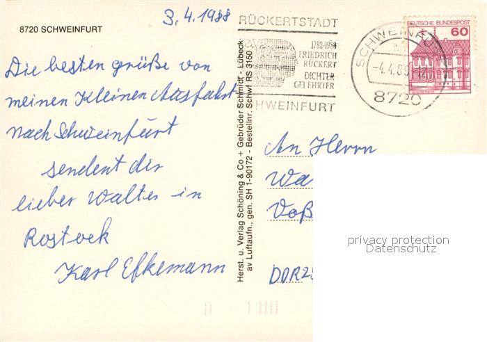 73730459 alte Postkarte Schweinfurt Fliegeraufnahme postalisch gelaufen Erhaltung siehe scans [WerneD78] KatCode: 11110009662000