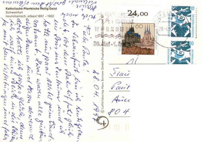 73897706 alte Postkarte Schweinfurt Kath Pfarrkirche Heilig Geist Fliegeraufnahme postalisch gelaufen Erhaltung siehe scans [FriedD77] KatCode: 11110009662000