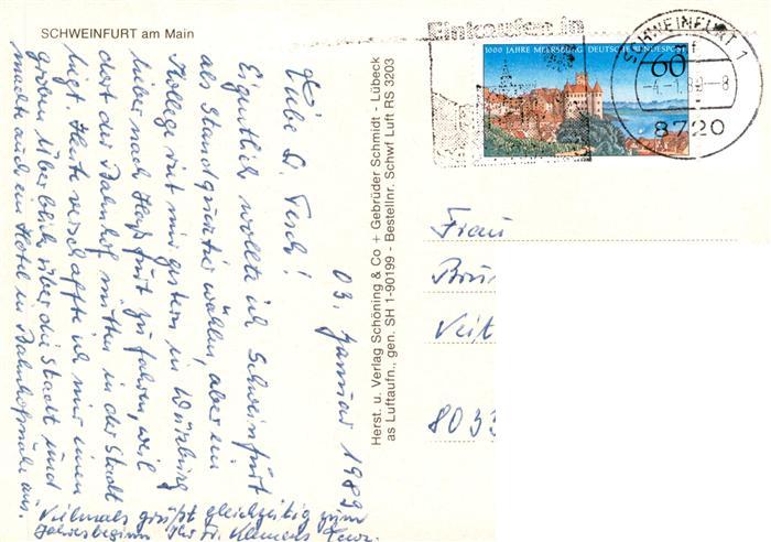 73897705 Schweinfurt Main Fliegeraufnahme postalisch gelaufen Erhaltung siehe scans [FriedD77] alte Postkarte Frie Katcode 11110009662000