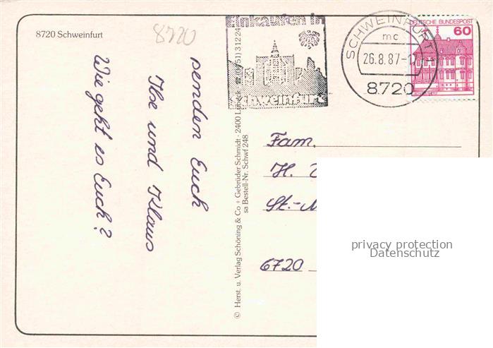 74054447 alte Postkarte SCHWEINFURT Main Mainpartie Rathaus Markt Fussgaengerzone postalisch gelaufen Erhaltung siehe scans [WerneD78] KatCode: 11110009662000