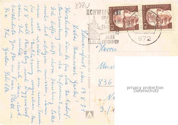 74054445 alte Postkarte SCHWEINFURT Main Mainpartie und Marktplatz postalisch gelaufen Erhaltung siehe scans [WerneD78] KatCode: 11110009662000