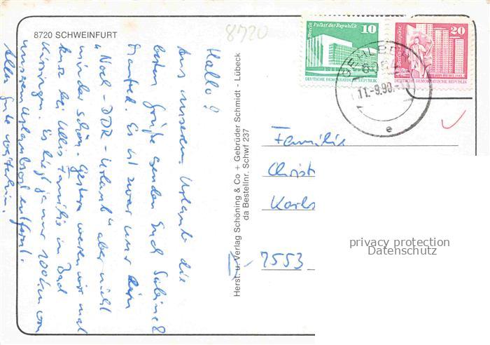 74054406 alte Postkarte SCHWEINFURT Main Marktplatz Fussgaengerzone Rathaus Theater postalisch gelaufen Erhaltung siehe scans [WerneD78] KatCode: 11110009662000