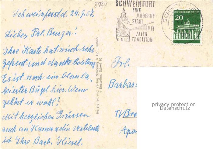 74054940 alte Postkarte SCHWEINFURT Main Rathaus Marktplatz mit Rueckert Denkmal Schloss Mainberg postalisch gelaufen Erhaltung siehe scans [WerneD78] KatCode: 11110009662000