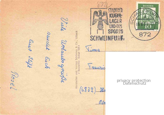 74054976 alte Postkarte SCHWEINFURT Main Rathaus Marktplatz Park Fontaene Schwimmbad postalisch gelaufen Erhaltung siehe scans [WerneD78] KatCode: 11110009662000