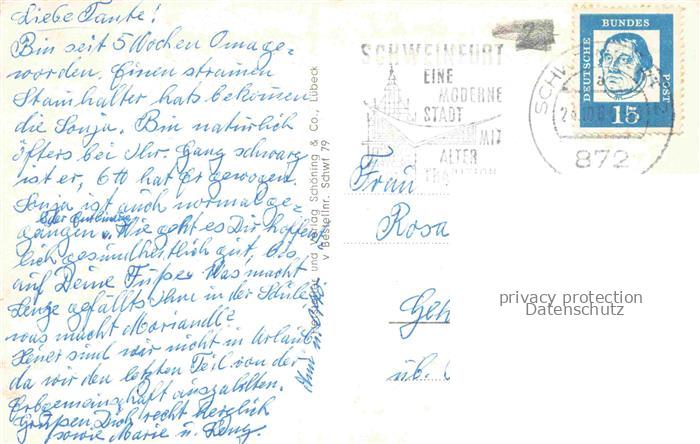 34144944 alte Postkarte SCHWEINFURT Main Schloss Mainberg Rathaus Willy Sachs Stadion Staddthalle und St Kilian Kirche Rueckert Denkmal postalisch gelaufen Erhaltung siehe scans [WerneD78] KatCode: 11110009662000