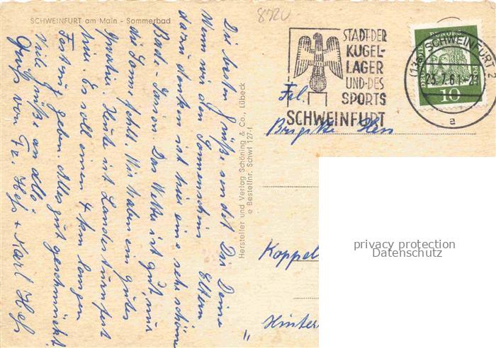 74054986 alte Postkarte SCHWEINFURT Main Sommerbad Sprungturm postalisch gelaufen Erhaltung siehe scans [WerneD78] KatCode: 11110009662000