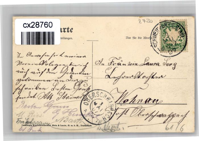 30910178 alte Postkarte Schweinfurt Main Stenotachngrafenverein postalisch gelaufen KatCode: 11110009662000