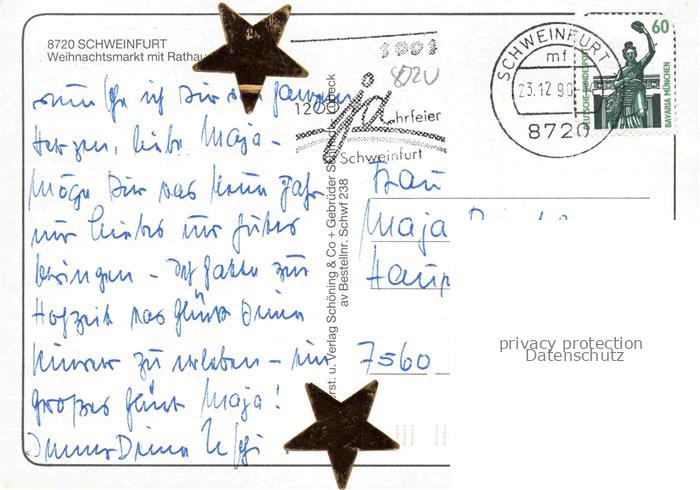 74054951 alte Postkarte SCHWEINFURT Main Weihnachtsmarkt mit Rathaus postalisch gelaufen Erhaltung siehe scans [WerneD78] KatCode: 11110009662000