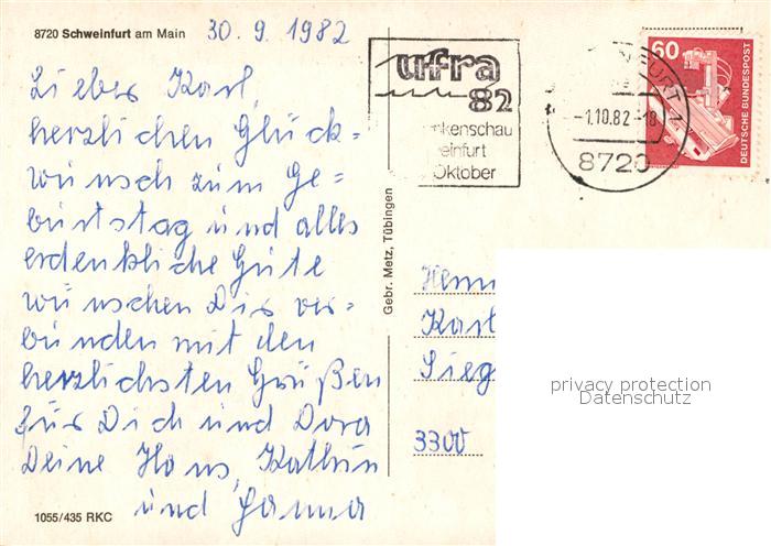 73133063 alte Postkarte Schweinfurt Mainbruecke Hochhaus Platz Parkanlagen Minigolf postalisch gelaufen Erhaltung siehe scans [FriedD77] KatCode: 11110009662000