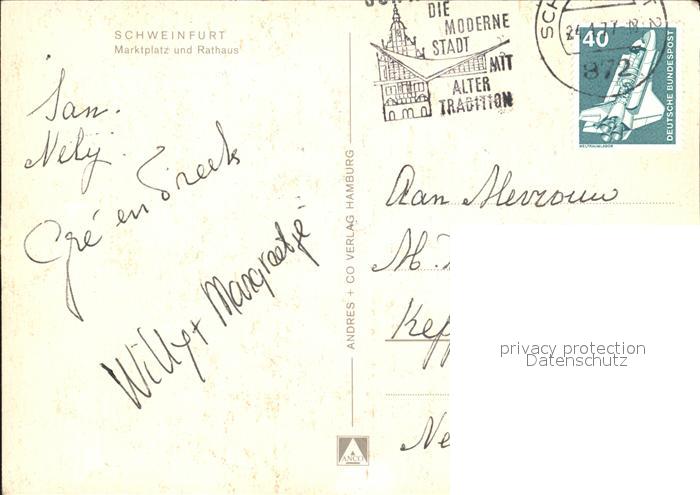 72269403 alte Postkarte Schweinfurt Marktplatz mit Rathaus postalisch gelaufen Erhaltung siehe scans KatCode: 11110009662000
