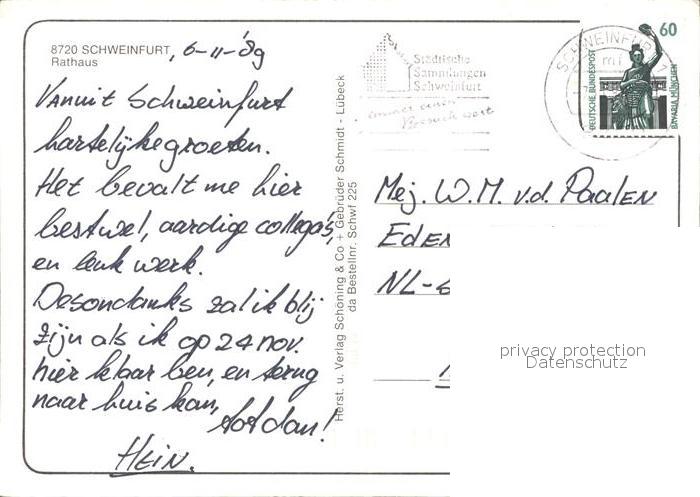 72404287 alte Postkarte Schweinfurt Rathaus postalisch gelaufen Erhaltung siehe scans KatCode: 11110009662000