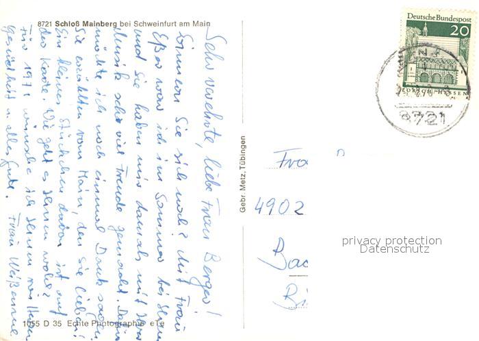 73071148 alte Postkarte Schweinfurt Schloss Mainberg postalisch gelaufen Erhaltung siehe scans [NatalD47] KatCode: 11110009662000