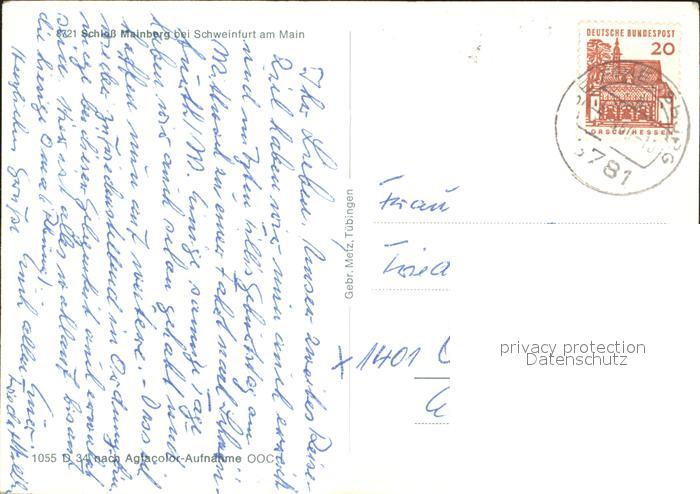 72213745 alte Postkarte Schweinfurt Schloss Mainberg am Main postalisch gelaufen Erhaltung siehe scans KatCode: 11110009662000