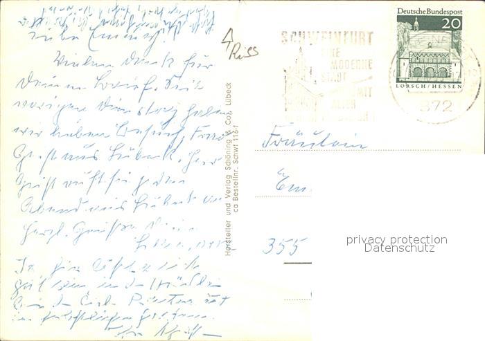 72597392 alte Postkarte Schweinfurt Schloss Meinberg Marktplatz Stadtpark postalisch gelaufen Erhaltung siehe scans [AndreD76] KatCode: 11110009662000