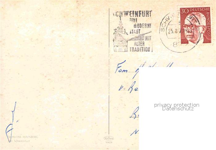 72655111 alte Postkarte Schweinfurt Schloss Meinberg postalisch gelaufen Erhaltung siehe scans [LiesaD40] KatCode: 11110009662000