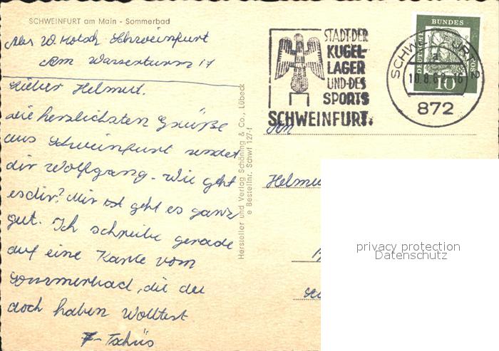alte Postkarte Schweinfurt Sommerbad Springtuerme postalisch gelaufen Erhaltung siehe scans