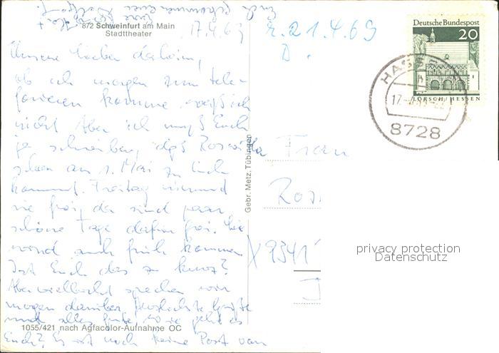 71991739 alte Postkarte Schweinfurt Stadttheater postalisch gelaufen Erhaltung siehe scans KatCode: 11110009662000