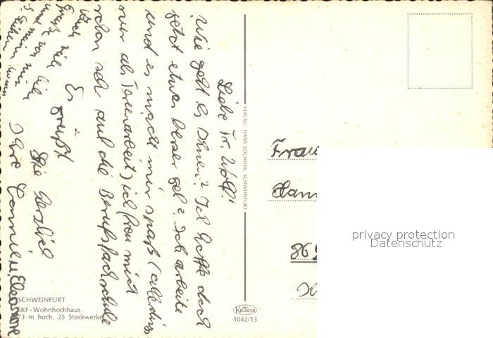 72063140 Schweinfurt Wohnhochhaus postalisch nicht gelaufen Erhaltung siehe scans KatCode: 11110009662000