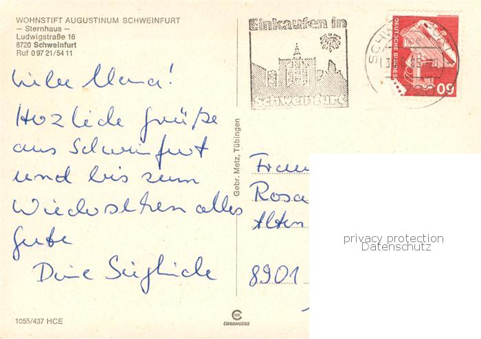 73759263 alte Postkarte Schweinfurt Wohnstift Augustinum Schweinfurt Springbrunnen postalisch gelaufen Erhaltung siehe scans [LiesaD40] KatCode: 11110009662000
