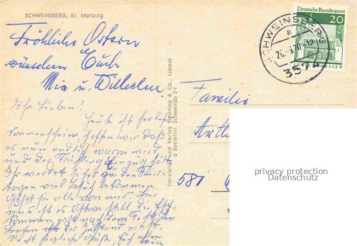 74156310 alte Postkarte Schweinsberg Stadtallendorf Hessen Schloss Burg Kirchturm Altstadt Huegel Fachwerkhaeuser Wiesental Hessen Ortschaft postalisch gelaufen Erhaltung siehe scans [Karloger] KatCode: 11110006534018