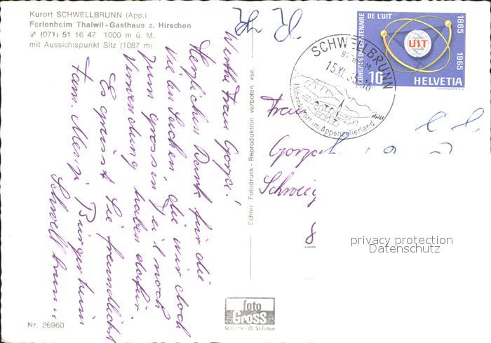 11943322 alte Postkarte Schwellbrunn Ferienheim Thaiwil Gasthaus z. Hirschen postalisch gelaufen KatCode: 11470020060536