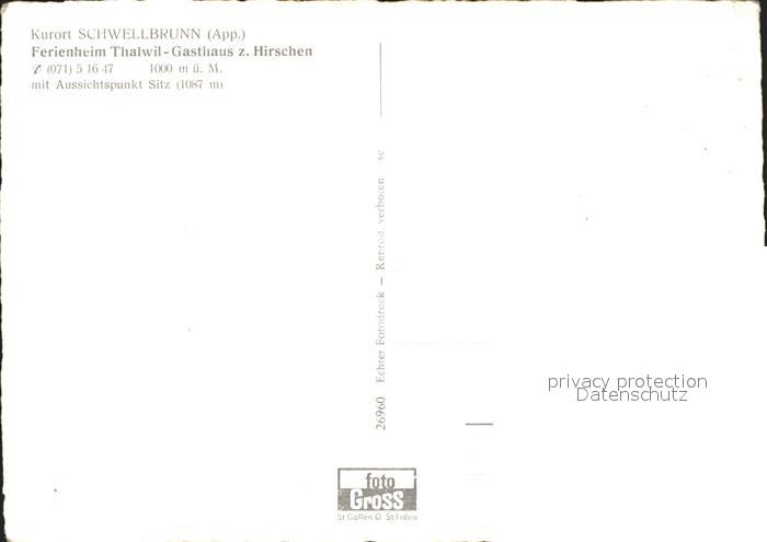 11637066 Schwellbrunn Ferienheim Thalwil Gasthaus zum Hirschen postalisch nicht gelaufen KatCode: 11470020060536