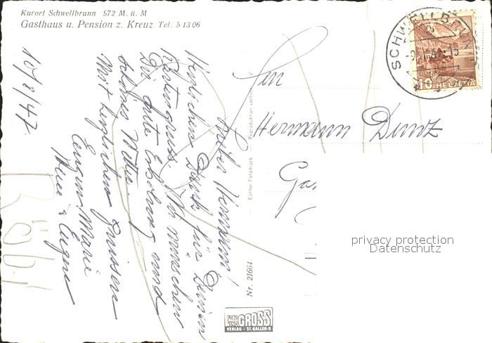 11632670 alte Postkarte Schwellbrunn Gasthaus Pension zum Kreuz postalisch gelaufen Erhaltung siehe scans KatCode: 11470020060536