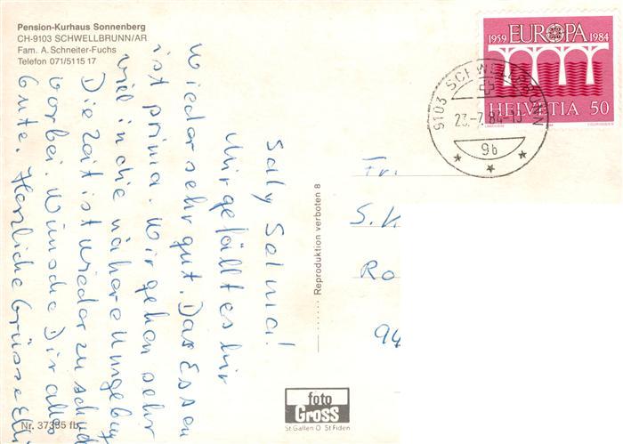 13881182 alte Postkarte Schwellbrunn Pension Kurhaus Sonnenberg Gastraeume Panorama postalisch gelaufen Erhaltung siehe scans [FriedD77] KatCode: 11470020060536