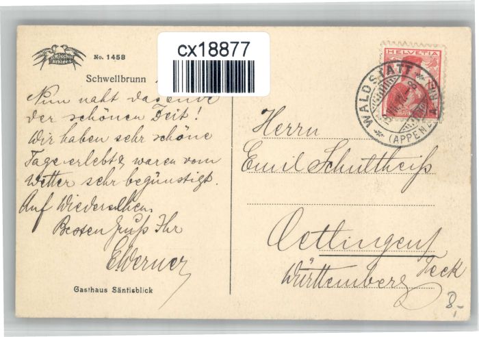 10722846 alte Postkarte Schwellbrunn Saentisblick postalisch gelaufen KatCode: 11470020060536