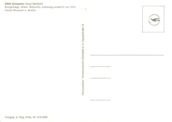 73883971 Schwelm Haus Martfeld Burganlage Heute Museum Fliegeraufnahme postalisch nicht gelaufen Erhaltung siehe scans [WerneD78] KatCode: 11110005954024