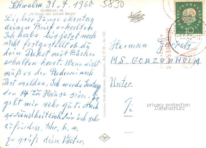 73695168 alte Postkarte Schwelm Panorama Teilansichten postalisch gelaufen Erhaltung siehe scans [WerneD78] KatCode: 11110005954024