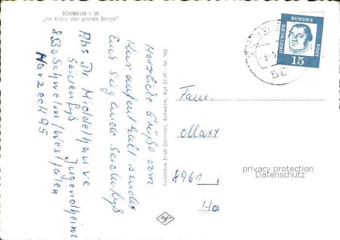 72506354 alte Postkarte Schwelm postalisch gelaufen Erhaltung siehe scans KatCode: 11110005954024