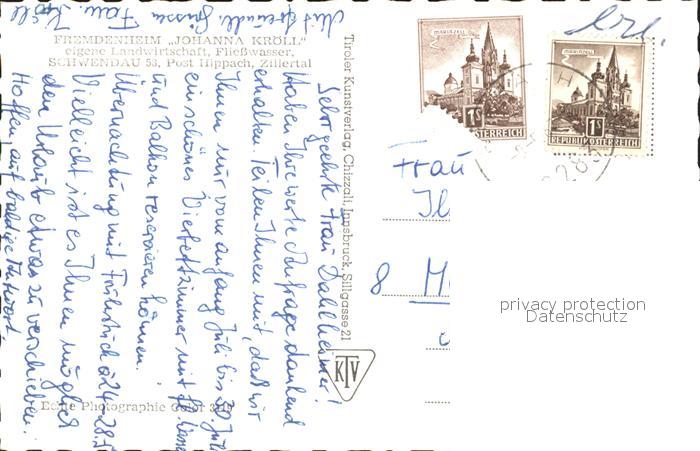 72271059 alte Postkarte Schwendau Fremdenheim Johanna Kroell postalisch gelaufen Erhaltung siehe scans KatCode: 11390335070927
