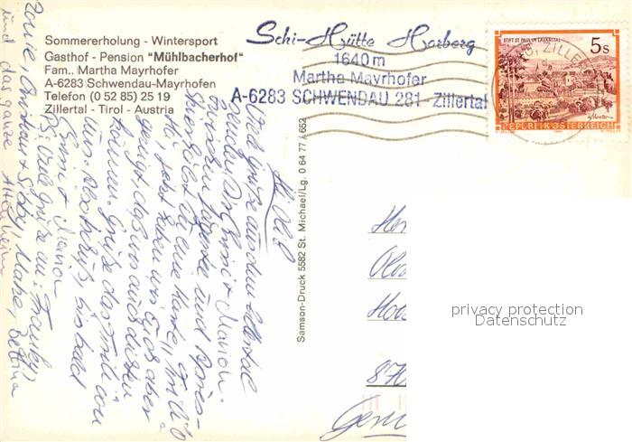 12780306 alte Postkarte Schwendau Gasthof Pension Muehlbacherhof postalisch gelaufen Erhaltung siehe scans [WerneD78] KatCode: 11390335070927