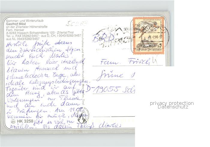 71850648 alte Postkarte Schwendberg Hippach Gasthof Moesl an Zillertaler Hoehenstrasse postalisch gelaufen Erhaltung siehe scans KatCode: 11390335070916