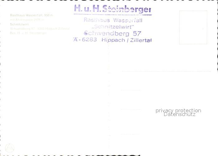 72016800 Schwendberg Hippach Rasthaus Wasserfall Schnitzlwirt postalisch nicht gelaufen Erhaltung siehe scans KatCode: 11390335070916