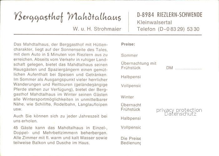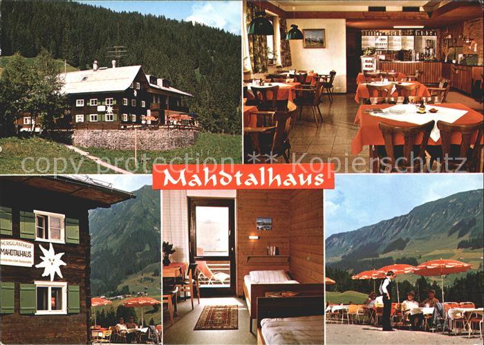 72051743 Schwende Riezlern Kleinwalsertal Berggasthof Mahdtalhaus Terrasse postalisch nicht gelaufen Werbekarte (keine Postkarte) Erhaltung siehe scans KatCode: 11390