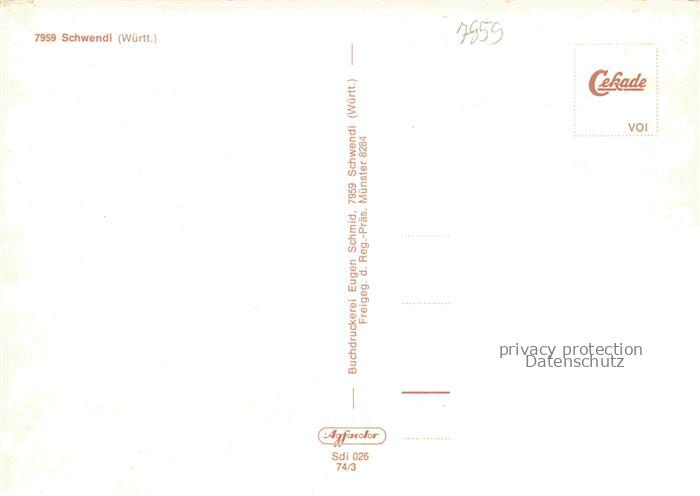 74050781 alte Postkarte Schwendi Biberach BW Fliegeraufnahme postalisch gelaufen Erhaltung siehe scans [WerneD78] KatCode: 11110008426108