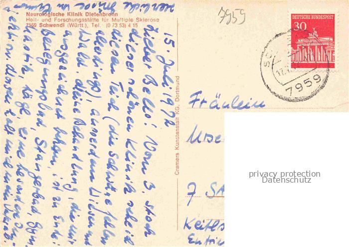74050780 Schwendi Biberach BW Neurologische Klinik Dietenbronn Schwanenteich postalisch nicht gelaufen Erhaltung siehe scans [WerneD78] Wern Katcode 11110008426108