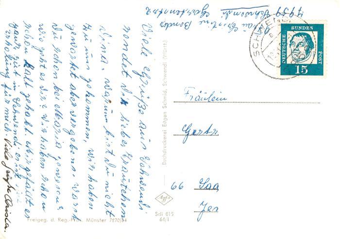 73873267 alte Postkarte Schwendi Wuerttemberg Fliegeraufnahme postalisch gelaufen Erhaltung siehe scans [FriedD77] KatCode: 11110008426108