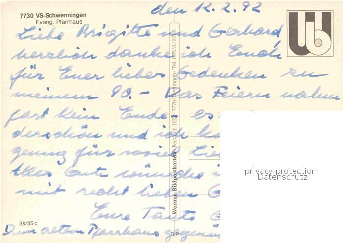 72654306 Schwenningen Neckar Ev Pfarrhaus postalisch nicht gelaufen Erhaltung siehe scans [WerneD78] KatCode: 11110008326074