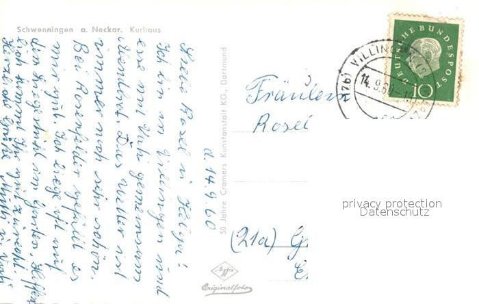 73282414 alte Postkarte Schwenningen Neckar Kurhaus postalisch gelaufen Erhaltung siehe scans [NatalD47] KatCode: 11110008326074