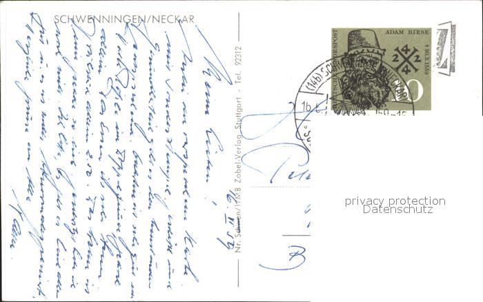 31849556 alte Postkarte Schwenningen Neckar Neckarquelle Kienzle Uhrenfabrik Rathaus Kirche postalisch gelaufen Erhaltung siehe scans KatCode: 11110008326074
