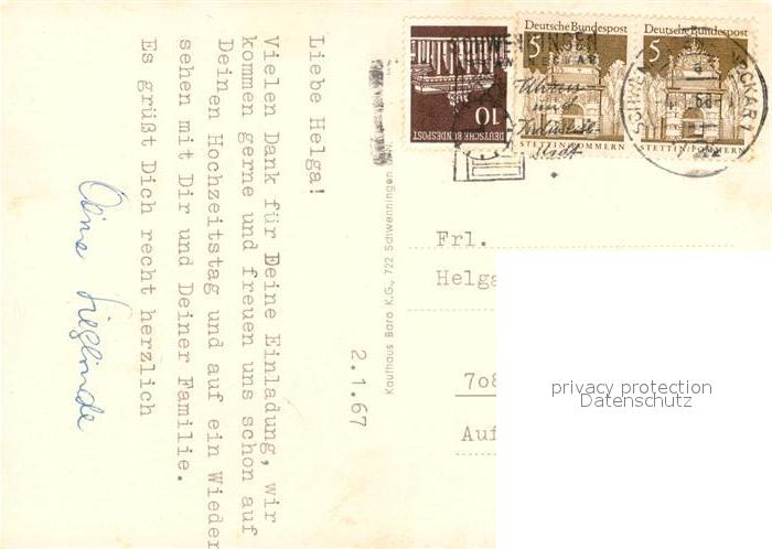 73266129 alte Postkarte Schwenningen Neckar Teilansichten Uhrenstadt Marktplatz Kirche Rathaus Freibad Partie am See postalisch gelaufen Erhaltung siehe scans [FriedD77] KatCode: 11110008326074
