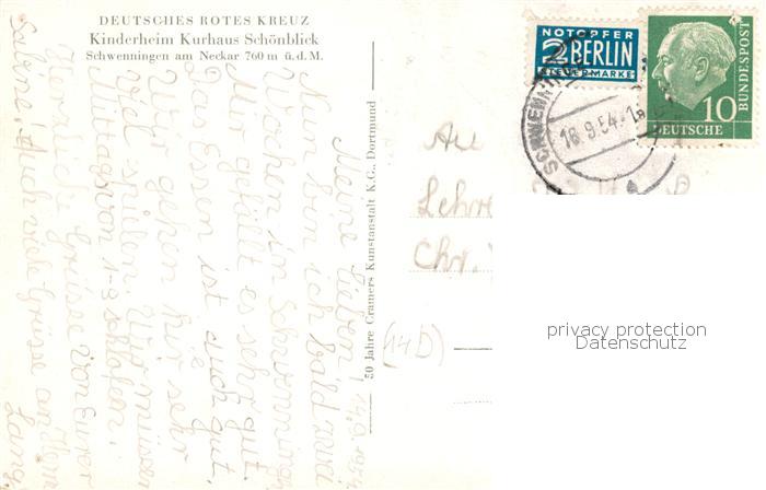 73829578 alte Postkarte Schwenningen Neckar Villingen-Schwenningen DRK Kinderheim Kurhaus Schoenblick postalisch gelaufen Erhaltung siehe scans [WerneD78] KatCode: 11110008326074